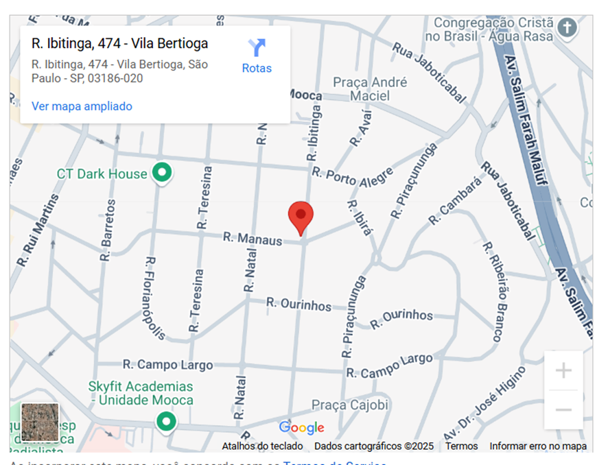 Verifique nossa localização pelo mapa.